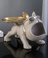 Graue Bulldoggenstatue mit Tablett 20 cm