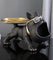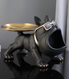 Schwarze Bulldoggen-Hundestatue mit Tablett 20 cm