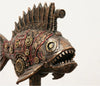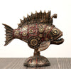 Verleihen Sie Ihrer Einrichtung mit dieser 23 cm großen Steampunk-Fischstatue einen Hauch von Originalität und Retro-Futurismus. Dieser Fisch mit seinen mechanischen Details und metallischen Oberflächen sieht aus, als käme er direkt aus einer Fantasiewelt, in der Natur auf Technologie trifft. Diese Statue ist vom industriellen Stil des Steampunk inspiriert und verfügt über Zahnräder, Nieten und Texturen, die an imaginäre technische Kreationen des 19. Jahrhunderts erinnern.